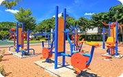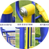 使用静电喷塑工艺,静电吸附,高温烘烤,使器材表面光亮持久